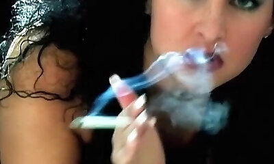 शानदार धूम्रपान vid के साथ भूरे बालों वाली, जोड़ी विगनेट्स