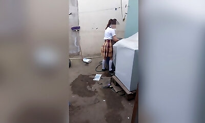 insane asiático av modelo nubile es golpeado en colegio uniforme