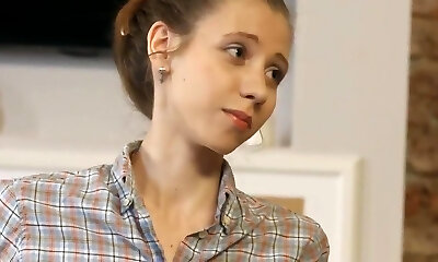 pequeña adolescente consigue su primer pummel después de la universidad en la tarea
